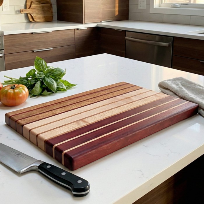 Doğanın Sanatı, Sizin Mutfağınızda: Akçaağaç , Paduk & İroko (Premium Sınıf) Özel Tasarım Kesme Tahtası